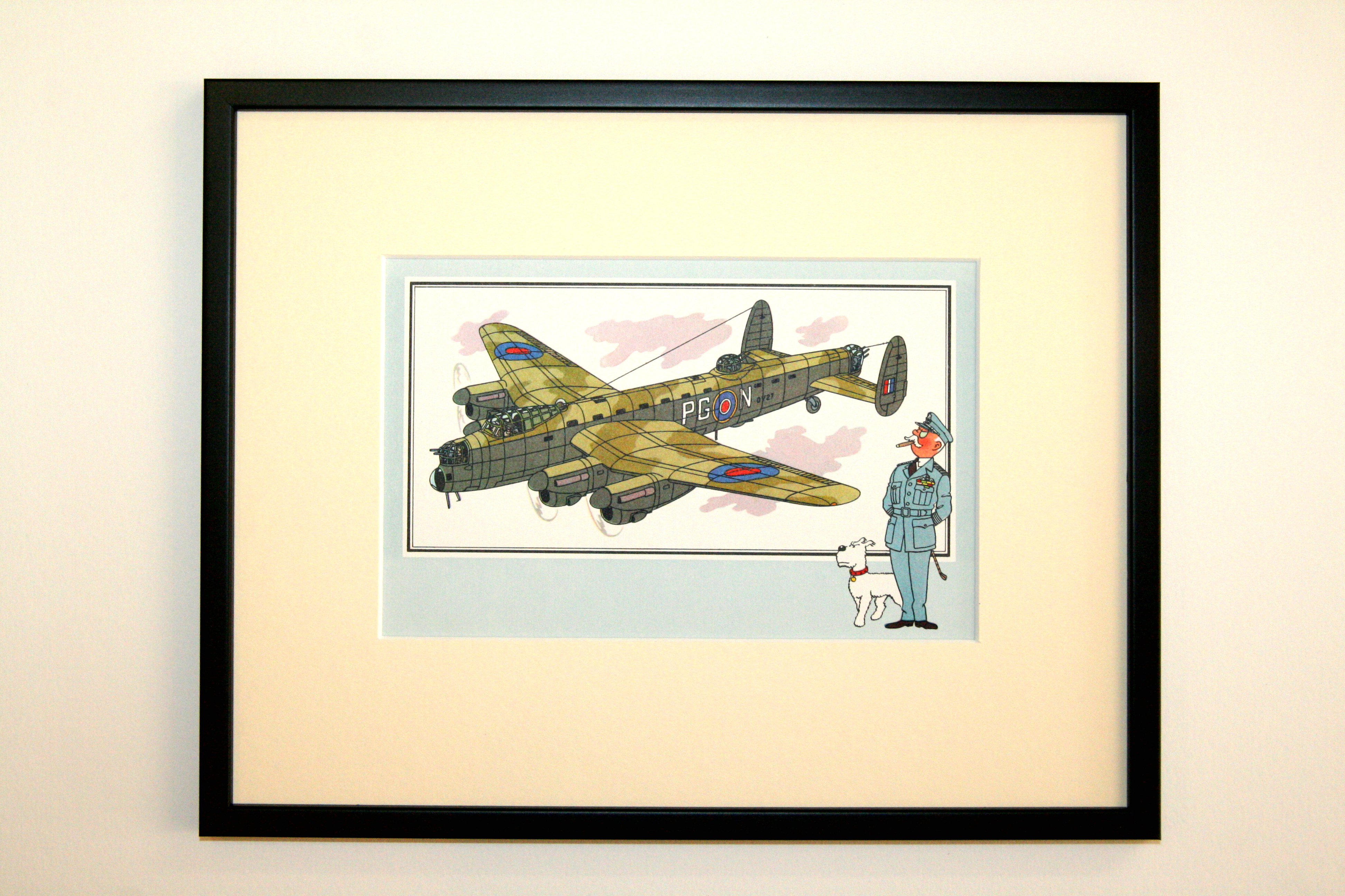 Original Tintin chromolithographs, designed by Hergé, are collectors’ items from the 1950s. All Tintin pictures are conservation framed and will be framed like the Tintin with Lancaster plane litho above. To find out more about the lithographs, please click on the images.